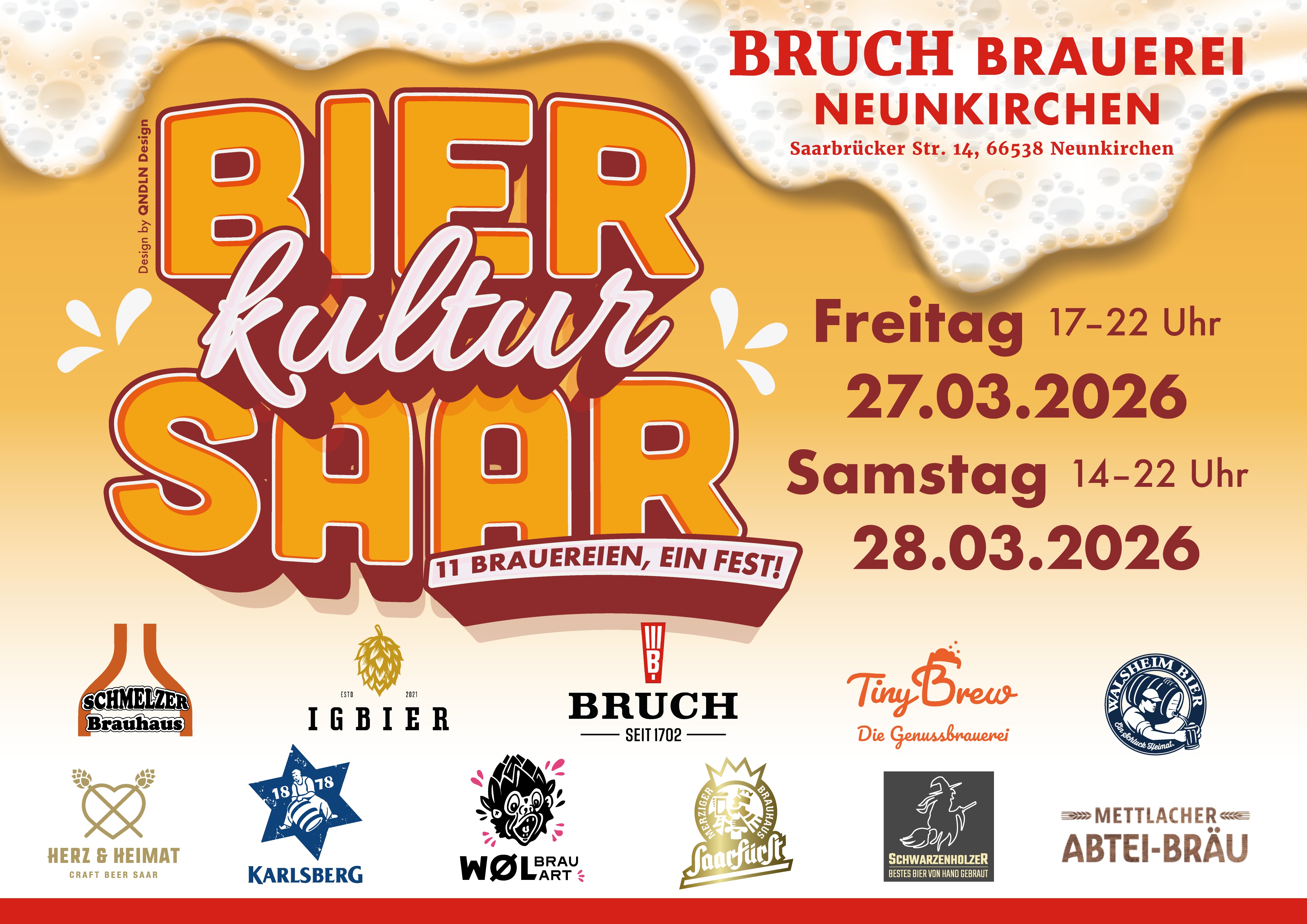 am Freitag, 27. März 2026, und Samstag, 28. März 2026, findet erstmals die Bier Kultur Saar statt – ein neues Format, bei dem sich elf saarländische Brauereien gemeinsam präsentieren!